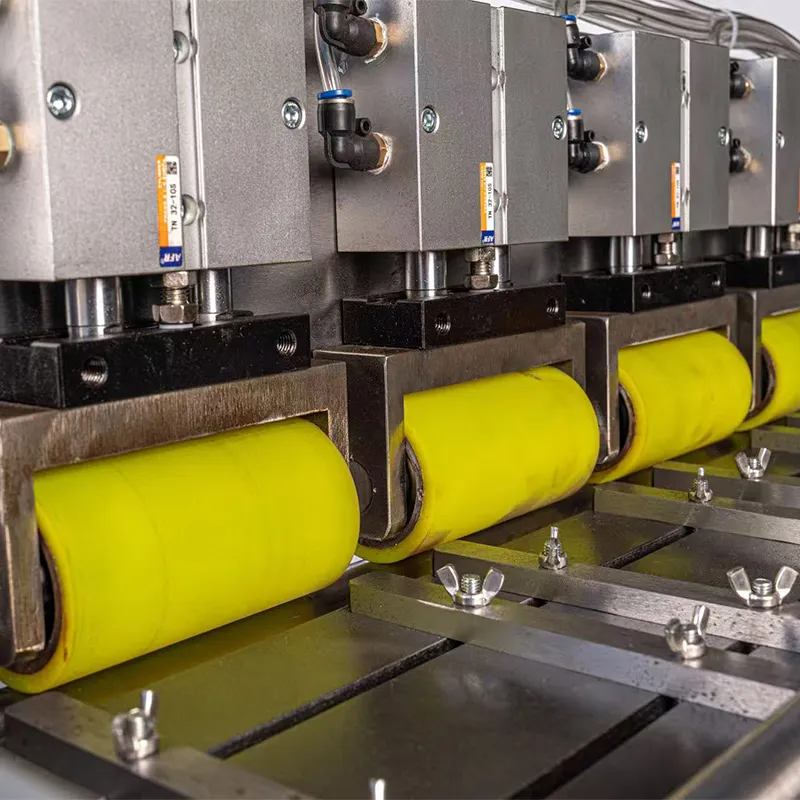 Назначение: Оборудование ориентировано на промышленное серийное производство. Совместимо с вальц-станком для оребрения модели 500 и сервоприводной отрезной машиной модели 500. Вмещает четыре рулона алюминиевой фольги толщиной 0,15–0,5 мм или медной фольги толщиной 0,12–0,35 мм (максимальный вес одного рулона ≤800 кг). Применяется для обработки рёбер теплообменников в крупных чиллерах и судовых радиаторах. Благодаря ротации четырёх рулонов и интеллектуальной системе планирования обеспечивается до 12 часов непрерывной работы, что значительно снижает трудозатраты на замену материала.